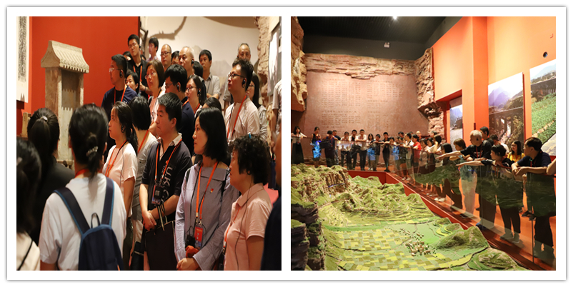 6月15日下午,全体成员在讲解员引领下,参观了红旗渠纪念馆。一张张图片,一件件实物,一组组雕塑,一个个场景,将大家带回到了半个世纪以前10万大军战太行的建设场面。1960年至1969年,在极其困难的特殊时期,十万林县人挺进太行山,在县委书记杨贵和基层党组织的坚强领导下劈开太行山,引漳入林。靠着一锤、一钎、一双手,历经艰辛,耗时十年,在万仞壁立、千峰如削的太行山悬崖峭壁上凿出了一道长1500公里“人工天河”——红旗渠,结束了河南林县百年来,十年九旱,水贵如油的苦难历史。林县人民也用坚韧和不屈将“自力更生、艰苦创业、团结协作、无私奉献”的红旗渠精神之旗插在了太行之巅。“81条生命牺牲在了建设工地上,其中年龄最大的63岁,最小的只有17岁。”一阵阵惊呼、一声声感叹,参观过程中,学员们心潮起伏、思绪难平。他们为林县人民曾经的苦难岁月而痛心,更为林县人民自力更生、团结奋斗、誓把河山重安排的壮举和创造的人间奇迹而折服。向党致敬,向英雄致敬,向人民致敬是每个人心中的呼声。