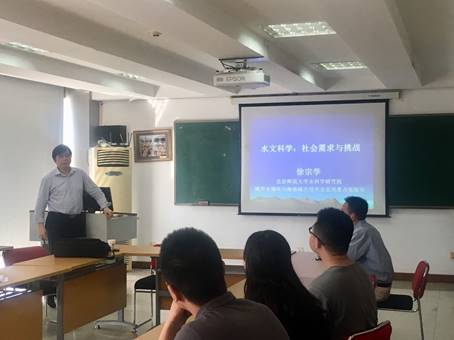 2019年6月3日,北京师范大学水科学研究院副院长徐宗学教授应生态水文实验室吴一平教授的邀请,到访js33333金沙线路检测,并进行了以“水文科学:社会需求与挑战”为题的学术报告。