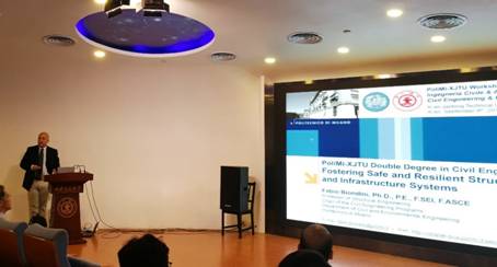 米兰理工大学土木工程课程理事会主席,Fabio Biondini教授在详细介绍该校土木工程专业学科特点的同时,介绍了关于可持续建筑设计与建设相关的研究成果。提出从建筑全生命周期评价和设计建筑的经济性能、老化速度等相关因素,综合考虑建筑的设计。