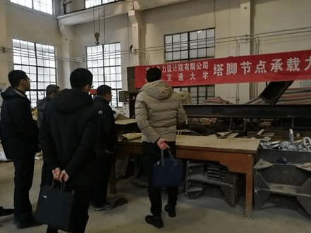 下午,孙清教授带领国网新疆电力有限公司建设分公司科技主管王金锁副总经理及其他参会人员参观了西安交通大学的实验室,观摩了正在进行的塔腿节点承载力试验。