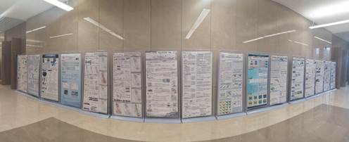 下午,同学们参观学习了位于涵英楼东辅楼一楼的科研成果展板,并由评委老师们对展板进行了现场评审打分。评委们针对展板内容向学生提出专业问题,指出有待改进加强的地方。通过师生间的互相交流,老师的思维和想法给同学们带来了很大启发,拓展了同学们思考问题的思路。