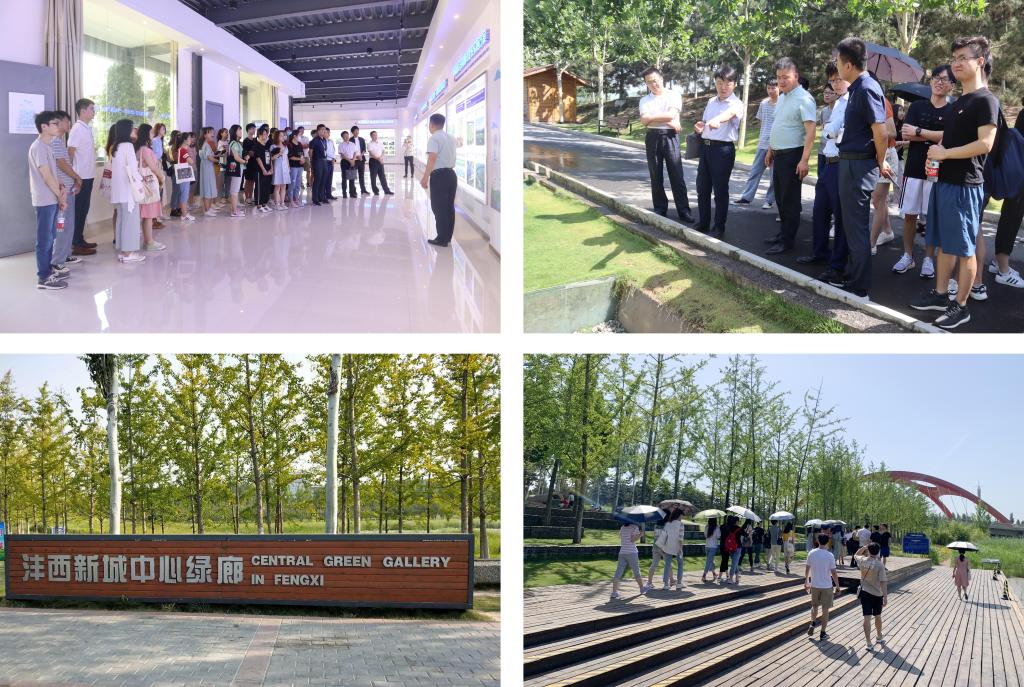 走出展馆,学习团一行实地考察了横穿新城核心区、被誉为“大西安中央公园”的中心绿廊。绿廊全长6.8公里,总占地面积180公顷,连接了区域内渭河、沣河两大水系,既是生态廊道,又是城市通风带,同时具有生物迁徙栖息、公共休闲、雨洪调蓄枢纽和景观等多重功能,真正实现了“一百米见绿,三百米见园”的人性化规划愿景。同时,绿廊还是沣西新城着力打造四级雨水系统的核心单元,路边多个海绵工程节点的剖断面形象直观地展示了其工作原理。如今,海绵城市理念早已深入身心,作为热门打卡地的中心绿廊,在空间、功能及环境效益等方面成效突显,发挥着不容忽视的生态职能。
