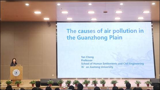 程燕教授以“关中平原空气污染的原因”为主题,介绍了近年来关中平原的空气污染情况,关中平原空气污染呈现冬季PM2.5高污染夏季臭氧高污染的特征,这与人为排放、类似盆地的地形与低风速密不可分,并总结了影响空气污染的四个因素:污染源、分散条件、大气中的复杂反应、传播,该研究对治理城市环境空气污染提供了切实可行的依据。