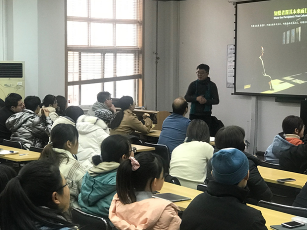 12月3日,西安市社科院研究员邵振宇介绍了设计与其他学科的关联、成果与价值。从设计与哲学、设计与工学、设计与数学、设计与美学、设计与文学(音乐)、设计与物理学以及设计与心理学等七个层面,通过大量国内外历史史料和实际案例,深入浅出地分析了设计与以上相关学科的关联与融合,角度新颖独特,极大地拓展学生的设计思维和知识架构。