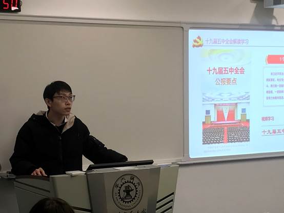 在学习领会十九届五中全会精神专题中,王建向支部成员展示了我国在决胜全面建成小康社会取得的10方面决定性成就,未来发展环境面临的深刻复杂变化以及为实现奋斗目标的12方面具体举措。通过王建系统的介绍以及视频深入浅出的讲解,支部成员们对我国在“十三五”规划期间取得的成就和“十四五”规划面临的机遇和挑战有了深入的了解。刘芬良表示,当前我们正处于百年未有之大变局中,作为一名交大研究生,我们要立足实践,培养独立思考和理性批判能力,在挑战中把握机遇,做出不愧于时代的贡献。