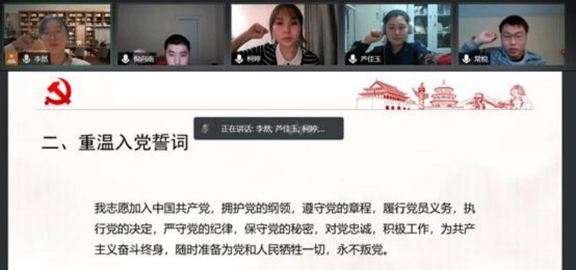 李然同志对五位同志的发言进行了总结,她勉励党小组成员坚定理想信念,保持初心,并带领五位同志重温入党誓词。会议在庄严的《国际歌》中结束。