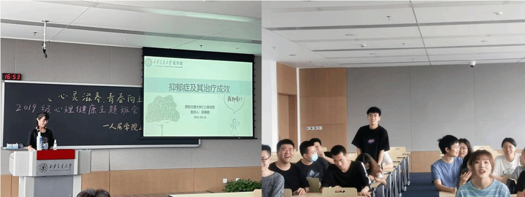 吴春颖以“抑郁症及其治疗”为题,为大家科普了抑郁症的发展史及其判断、病因、治疗现状以及如何预防和应对抑郁症等相关知识,并就常见心理问题与同学们开展交流讨论。通过加强心理健康教育,引导研究生关注自身心理状况,提升其心理健康素养,成长成才为阳光健康、积极向上的新时代青年。心理委员程丹和李沅锟表示,心理委员作为心理问题的发现者以及同学心理健康的援助者,将密切关心每一位同学,为同学们热情提供心理健康服务。