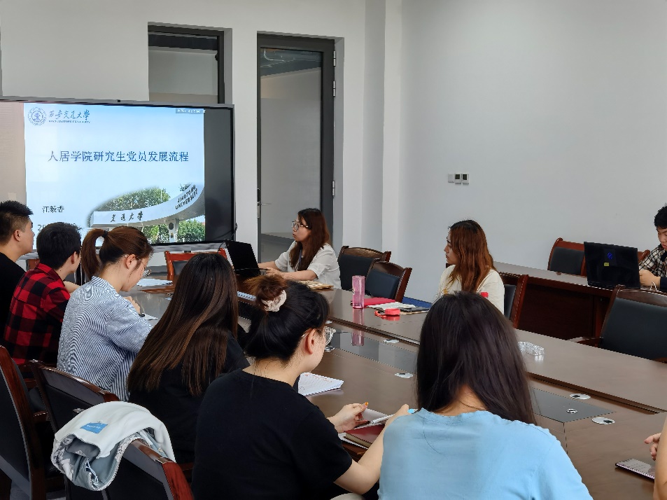 5月19日下午,js33333金沙线路检测分党委秘书汪毅香为全体发展对象、部分研究生党支部支委代表作了《研究生党员发展流程》讲解报告,帮助同志们充分解入党规程。汪毅香强调,全体同志要高度重视党员发展流程的规范性,发展对象要自觉执行,各党支部要严格把关,有效落实《中国共产党党员发展细则》及《陕西省发展党员工作规程》,从发展过程中提高思想觉悟、坚定理想信念。