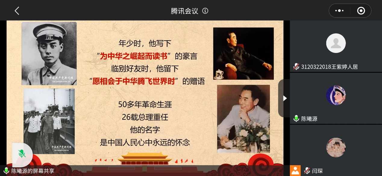 2021年5月25日晚,陈曦源和魏启明同学介绍了周恩来同志的生平,并表达了对周恩来总理的怀念。