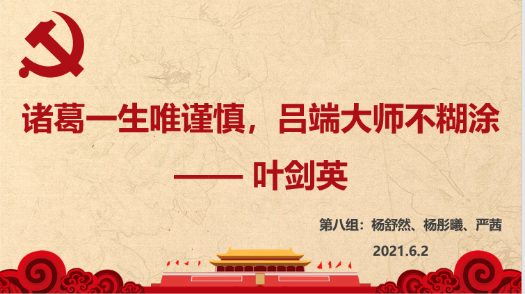 2021年6月2日晚,主讲人杨舒然带领支部成员学习了共和国十大元帅之一叶剑英的人物故事。
