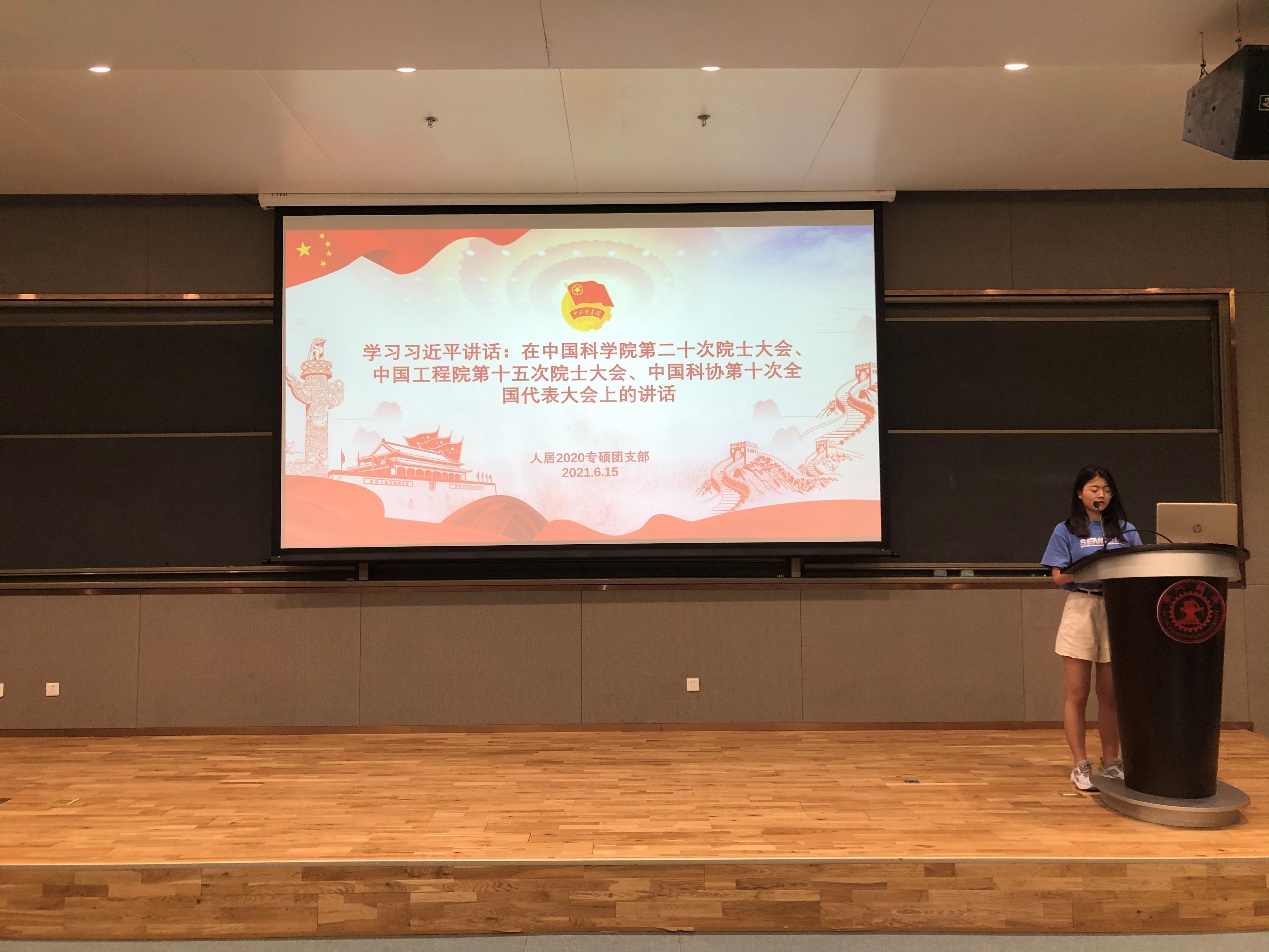 为深入学习贯彻习近平总书记在两院院士大会、中国科协第十次全国代表大会上的重要讲话精神,落实好团支部三会两制一课制度,2021年6月16日晚,js33333金沙线路检测2020级专硕团支部在涵英楼5-1E105教室开展了以“学习习近平总书记在两院院士大会中国科协十大上重要讲话精神”为主题的组织生活会,本次生活会由团支部副书记王紫婷同志主持,团支部书记陈驰同志主讲。