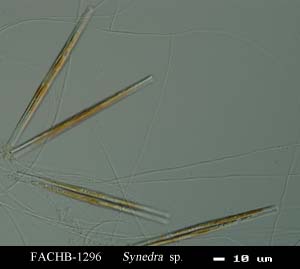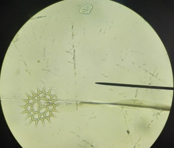 安康瀛湖以及采集的藻类物种(左:针杆藻;右:盘星藻)