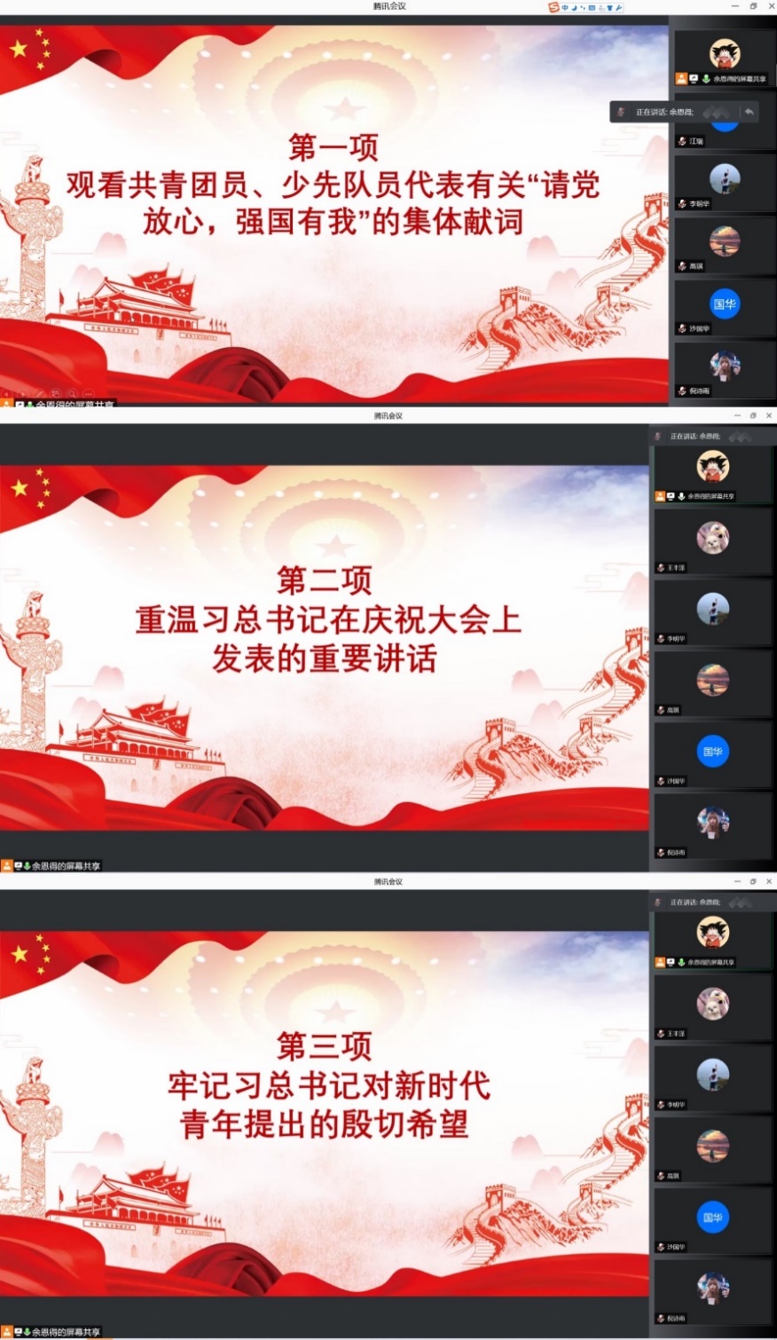 百年征程波澜壮阔,百年初心历久弥坚。为加强对广大青年的思想政治引领,感党恩、听党话、跟党走,切实夯实青年理论武装工作。2021年9月25日下午,js33333金沙线路检测2021级专硕团支部通过腾讯会议召开“请党放心、强国有我”主题团日活动,会议由团支部书记余恩得同志主持。