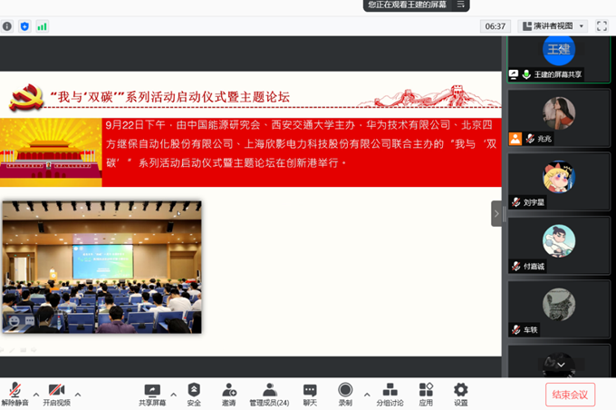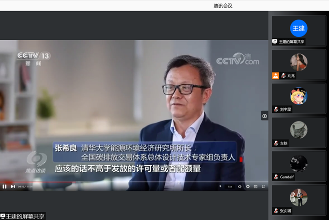会议第二部分,学习碳减排专题视频。支部同学集体观看学习了《焦点访谈》碳交易助力碳减排专题视频。王建同学从“消费电气化”、“负荷调度”、“智能电网”三个角度对碳减排进行解读。支部成员缪骋宇同学在观看专题视频后表示,“双碳”目标与我们专业息息相关,我们作为毕业班即将走上工作岗位,要将这种绿色清洁的技术和理念传递到工作中,为早日实现”双碳“目标贡献自己的力量。