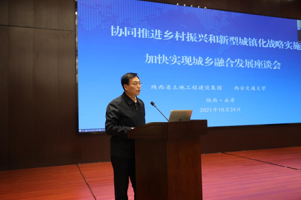 10月24日,由陕西省土地工程建设集团和西安交通大学联合举办的“协同推进乡村振兴和新型城镇化战略实施 加快实现城乡融合发展座谈会”在永寿召开。省乡村振兴局党组书记、局长孙亚政,陕西地建党委书记、董事长韩霁昌研究员,省自然资源厅党组成员、副厅长王雁林,省农业农村厅驻厅纪检监察组组长、厅党组成员丁东华,省委老干部局副局长苏晓梅,省社会科学院研究员、陕西省有突出贡献专家张宝通,陕西日报传媒集团党委委员、副总编辑周维军,中共陕西省委党校教育长张首魁,陕西果业集团党委副书记、总经理李玲等领导专家出席会议并作交流发言。咸阳市委常委、常务副市长郭柱国,市委常委、组织部部长王宏兵,陕西地建领导班子成员,js33333金沙线路检测领导班子成员及相关专家应邀参会。