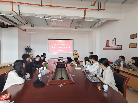 正式宣讲之前,团支部组织委员郑睿组织全体团员共同观看了《西迁人永远年轻——朱楚珠教授访谈》视频资料。朱楚珠教授是人口经济学和社会学专家,1955年毕业后来到西安,她曾主持联合国人口基金课题,她研究的内容也极大的推进了中国计划生育事业的发展。视频中的朱教授介绍了来到西安之后的科研和教学,六十多年“平静的在这里工作,为这里的人民、为国家做自己的贡献”。朱教授深情款款的诉说深深打动了在场所有同学。