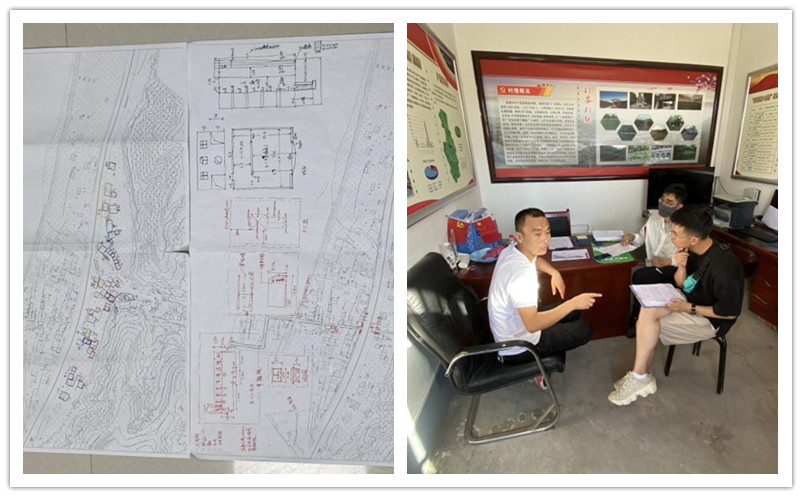经过前期的遥感勘测,初步掌握了试点村的地形地貌与建筑分布特征。根据地形图规划出实地考察草案,协调调研小组并配发相关测量仪器。按调查内容,分组走访村民民居,做到“全面调查,不漏一户”,全面统计试点村人居环境与居住者居住主观感受,为后期进行合理的统一规划提供基础数据支撑。