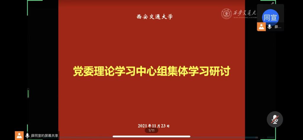 2021年10月23日,js33333金沙线路检测2020级学硕团支部于线上召开11月份专题组织生活会。在团支部副书记薛同宣的带领下,支部30位团员认真学习了《中国共产党第十九届中央委员会第六次全体会议公报》、《中国共产党关于党的百年奋斗重大成就和历史经验的决议》两份文件,共同观看了马克思主义学院燕连福教授关于党的十九届六中全会精神的辅导报告。