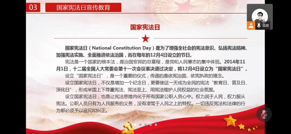 第三部分认识了“国家宪法日”设立的意义,学习了习近平总书记关于宪法的重要论述以及习近平法治思想中“坚持依宪治国、依宪执政”的重要性。
