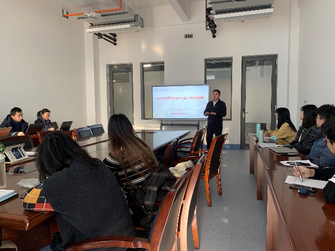 我校学生微宣讲团团长倪蒙以深入学习贯彻党的十九届六中全会精神为题作宣讲报告。倪蒙提出,全体同志应当以学习贯彻全会精神为动力,深刻把握我们党百年奋斗的重大成就和历史经验,坚定理想信念、牢记初心使命,把全会精神落实到科研与行动中。