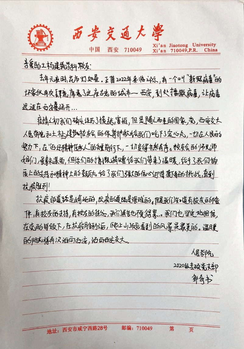 时值岁末,突如其来的新冠肺炎疫情打破了交大校园的平静,从12月27日起封校的手足无措,到一周之后对战胜疫情拥有的充足信心,这离不开党和国家、社会、学院和各位校友的倾情帮助与支持。