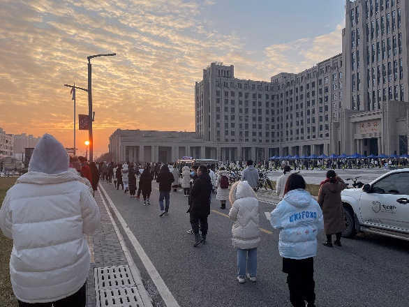 黄昏,日光渐隐,天地相接,在落霞白鸽的映衬下,涵英楼南广场上,做核酸的队伍稳步向前推进。为了疫情防控狙击战的胜利,为了尽快排除潜在隐患,从起初的核酸两日一测,到如今的每日一测,分时段、不交叉、防聚集,做到全面检测,不漏一人。深知事态的严重性,同学们全员都十分配合。在这场战役中,我们每个人都是不可或缺的一份子,发挥着不可替代的重要作用。