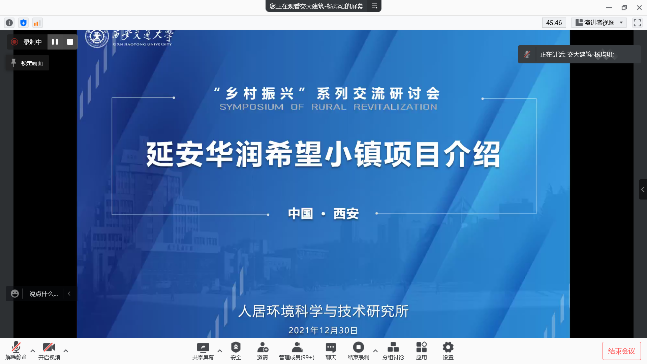 2021年12月30日晚,人居环境科学与技术研究所联合西安中易建科技有限公司(简称中易建科技)共同举办“乡村振兴”系列交流研讨会第一次讨论,线上参会师生和邀请嘉宾超过百人,是js33333金沙线路检测抗击疫情的又一项重要活动。