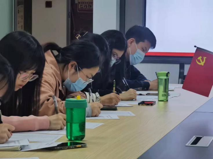 党支部副书记汪佳钰同志对各位同志的发言表示了充分肯定,鼓励大家在会后积极关注党内时政,加强理论学习,丰富自身头脑,在各处起到党员的先锋模范带头作用。同时,面对当前严峻的疫情形势,汪佳钰同志提醒各位同志做好防护,督促身边人落实核酸检测,配合疫情防控工作,要拿出必胜的决心和信心,众志成城,齐心抗疫。