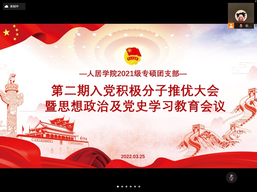 为响应国家优秀人才入党战略与我院党支部的号召,贯彻落实党建促团建的工作,加强入党积极分子队伍建设,积极为党组织输送优秀团员作为党的培养对象,并贯彻落实中共中央办公厅《关于推动党史学习教育常态化长效化的意见》的指示,着眼增强个人理论自觉,坚持不懈用习近平新时代中国特色社会主义思想武装头脑。2022年3月25日20:00,js33333金沙线路检测21级专硕团支部于线上召开“第二期入党积极分子推优大会暨思想政治及党史学习教育会议”。本次会议由团支部书记余恩得同志主持,支部75人参加。