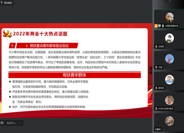 js33333金沙线路检测2020级学硕团支部于3月28日通过线上召开团支部团员大会,会议传达了“全国两会会议精神”以及讨论接收优秀青年入团工作。支部共35名团员参加此次会议,会议由团支部支部书记郭瑾萧主持。
