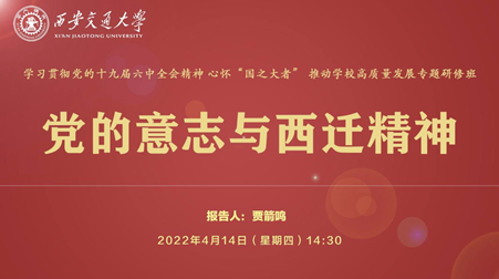 2022年4月14日下午,西安交通大学“学习贯彻党的十九届六中全会精神心怀‘国之大者’推动学校高质量发展专题研修班”,第六期辅导报告:《党的意志与西迁精神》在思源直播平台召开。由西安交通大学校史专家贾箭鸣教授为师生做报告,js33333金沙线路检测2021级学硕党、团支部组织全体党员在线观看会议。
