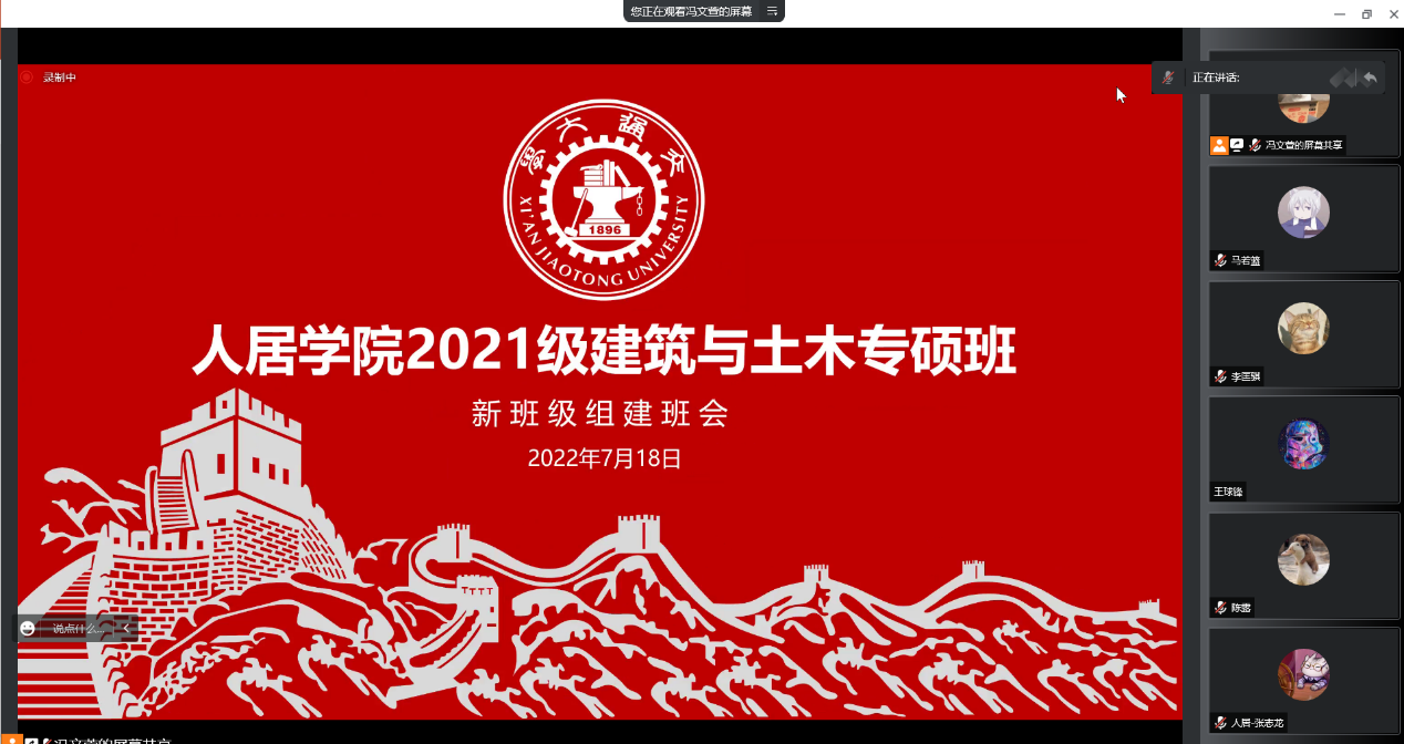 2022年7月18日晚,js33333金沙线路检测2021级建筑与土木专硕班召开了第一次班会,会议由副班长郭鉴辉同志主持,全班共47位同学参加会议。