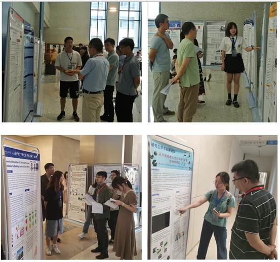 中午开展的是展板评比环节。在此环节中,参加展板类评比的同学们在展厅向大家介绍他们的科研成果,并由评委老师们对展板进行了现场评审打分。陆世锋和周晓骏等评委老师针对展板内容和同学们积极交流,并严格按照评分标准对每位同学的展板进行打分,在肯定了大家研究工作的同时,也对可以改进加强的方面提出了宝贵意见和建议。现场气氛十分热烈,通过师生面对面的直接沟通,让同学们学到了知识、开阔了眼界、增长了见识、夯实了基础。