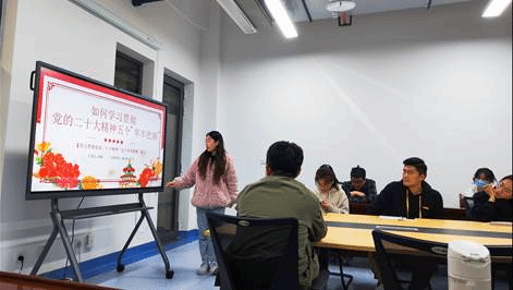 党支部纪律委员周蒙领学“学习贯彻党的二十大精神‘五个牢牢把握’”二十大精神学习专题,号召同学们要牢记历史使命,把握团结奋斗的时代要求,树立新征程的青年理想,勇担青年使命。
