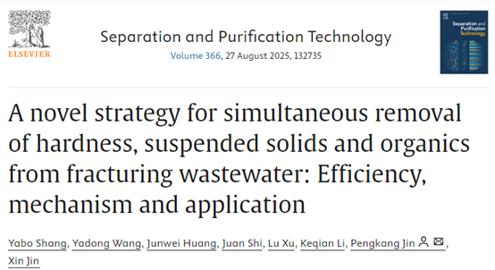 题目:A novel strategy for simultaneous removal of hardness, suspended solids and organics from fracturing wastewater: Efficiency, mechanism and application