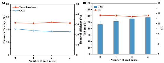 ●  专用晶种的存在提供了钙、镁离子核晶造粒的活性位点,经过酸洗烘干后可重复利用,并保持了高效的污染物去除率。