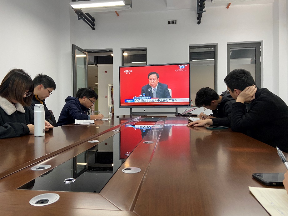 中国共产党第十九届中央委员会第六次全体会议,于2021年11月8日至11日在北京举行。11月12日上午,js33333金沙线路检测2020级学硕党支部在19-3034教室组织观看了中国共产党第十九届中央委员会第六次全体会议新闻发布会直播,学习党的十九届六中全会精神。党的十九届六中全会,听取和讨论了习近平受中央政治局委托作的工作报告,审议通过了《中共中央关于党的百年奋斗重大成就和历史经验的决议》。全会重点研究全面总结党的百年奋斗的重大成...