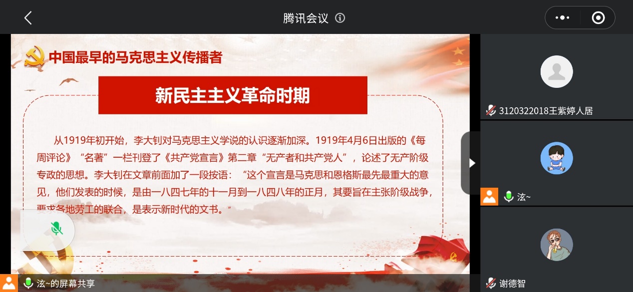 2021年是中国共产党成立100周年。值此百年诞辰之际,我们更加怀念为中国共产党的创建、为中国人民的解放事业做出奠基性贡献的伟大革命先驱们。为深入贯彻落实团支部三会两制一课制度,加强支部成员对党史的学习,js33333金沙线路检测2020专硕党团支部策划并开展线上党史系列学习活动——《党史人物志》。支部于2021年5月18日晚与5月20日晚进行了第三、四期的学习。会议由js33333金沙线路检测2020级专硕党支部宣传委员闫琛同志主持。第三期 以“青春...